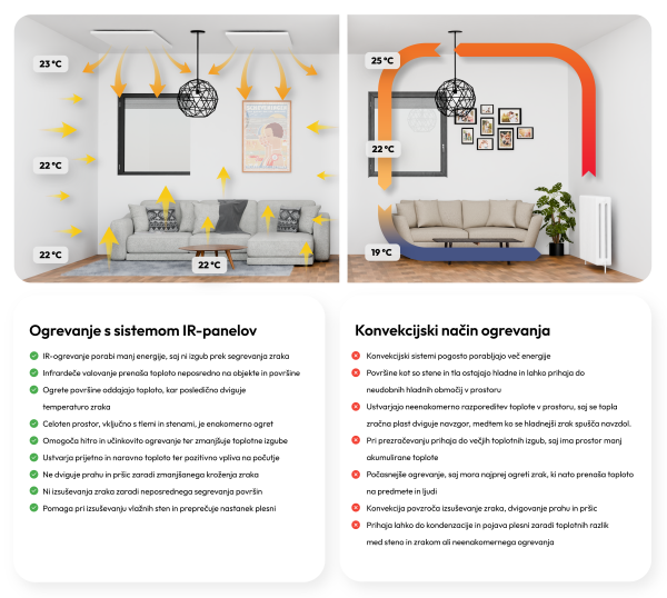 People are increasingly opting for IR heating for several reasons. High energy efficiency, which actually uses less energy to achieve the same room temperature as conventional heating systems, allows for quick and effective room heating. The simple installation of IR panels results in faster installation. The natural form of heat provided by the IR system positively affects comfort and well-being in the room. Lower initial investment compared to other central heating systems is attractive to many. Easy management and long-term durability of the system facilitate use and maintenance. Additionally, IR heating has a positive ecological aspect, as it does not produce harmful emissions and is environmentally friendly.