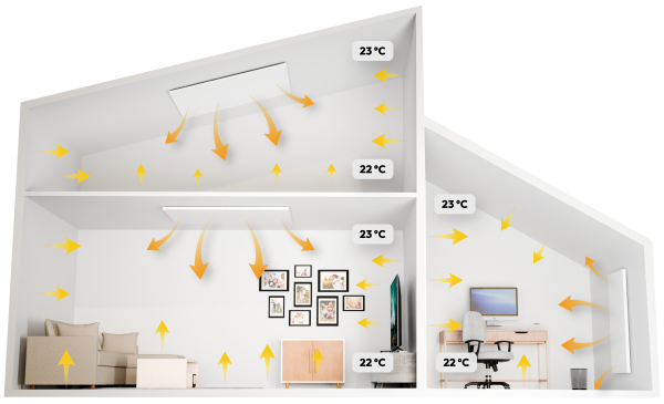 IR heating is known to be completely harmless and entirely natural, as it is present all around us. It is used in healthcare and has proven positive effects on health and well-being. Using the Ekosen IR heating system reduces the amount of dust and microorganisms in the air, as air circulation is lower compared to classic radiators and underfloor heating that use convection heating. This leads to a noticeable reduction in allergic reactions and respiratory problems, significantly improving overall well-being, especially for allergy sufferers and asthmatics. Additionally, the Ekosen IR heating system maintains optimal air humidity and prevents dry air. It also creates fewer conditions for mold formation, as it directly heats the walls, reducing the chances of condensation and mold occurrence.